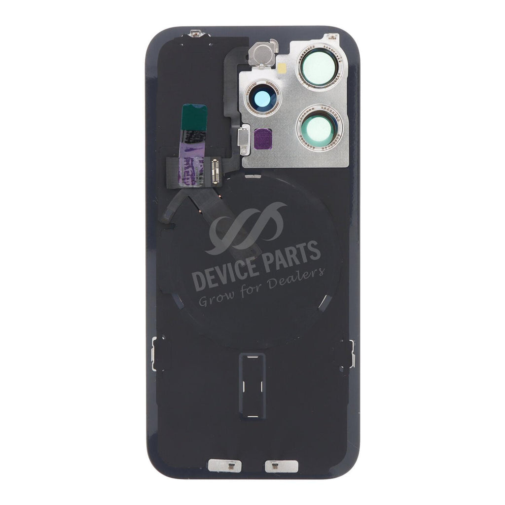 - Battery Door + Back Camera Lens and Bezel with Magnetism Ring+Metal Plate+Wireless Charger Chip+Flash Light for iPhone 15 Pro Black Titanium OEM