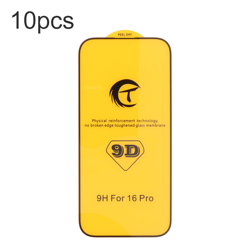 - 10Pcs 9D Full Screen Tempered Glass Screen Protector for iPhone 16 Pro/17 Black